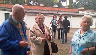 De nieuw ondekte buren, Etienne, Emma en Simonne op de voorgrond. Op de achtergrond de cameraploeg van ‘De Mensen’. Ook zij horen ondertussen bij de LIM-kennissenkring…