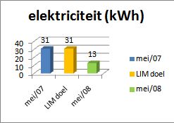 De cijfers voor energie. Daarbij heb ik het verbruik van mei vorig jaar vergeleken met het LIM-doel en met de resultaten van dit jaar.