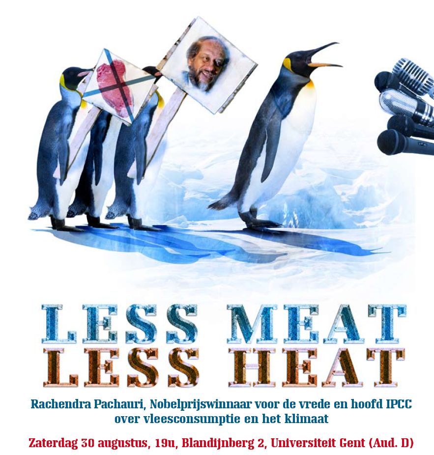 Op zaterdag 30 augustus komt Rachandra Pachauri spreken in Gent. Hij staat aan het hoofd van het International Panel on Climate Change en kreeg samen met Al Gore de nobelprijs voor de vrede. Ik wil zijn betoog over vlees en klimaat zeker horen en hoop van u hetzelfde. Om 19 uur op de Blandijnberg. Inschrijven kan via de site van Eva (Etisch Vegetarisch Alternatief)