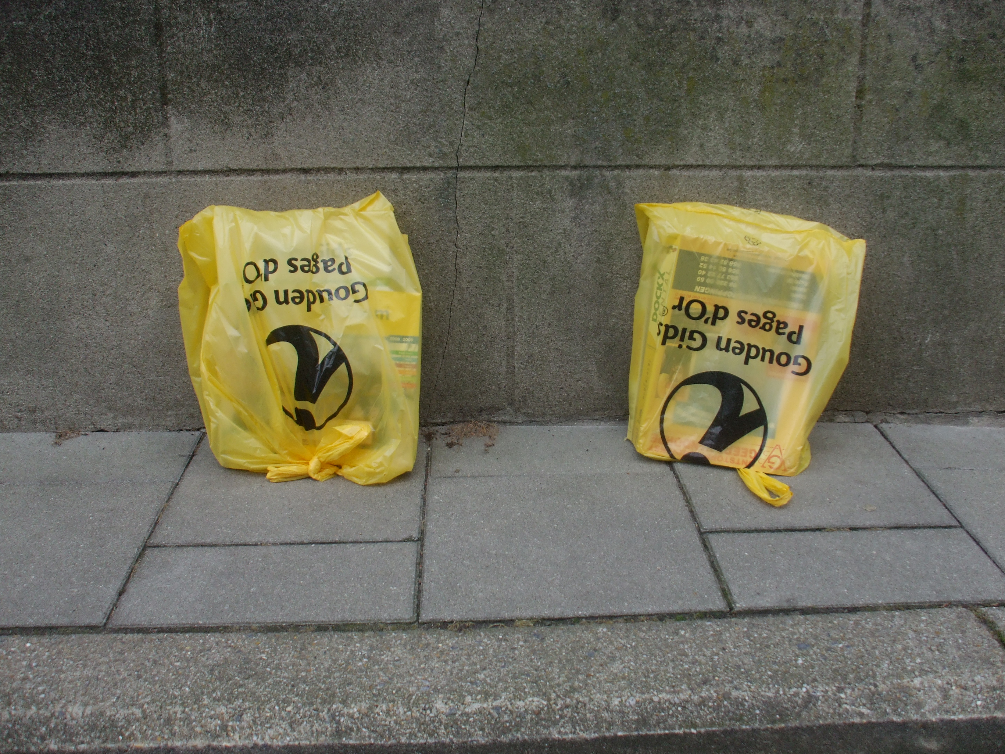 In Sint-Amandsberg is het weer zo ver. De jaarlijkse invasie van de gele plastiek zakken. In de zakken zitten de witte en de gele gidsen. Totaal van een zakje met twee grote en een klein gidsje; 2,5 kilogram. Volgens Truvo (want zo heet Promedia tegenwoordig) worden er jaarlijks 4,5 miljoen gidsen verspreid… Even tellen dus: 4,5 miljoen x 2,5 kilogram = 11 250 000 kilogram (gerecycleerd) papier. De ecologische voetafdruk van het bedrukt papier alleen al is goed voor 12 691 hectaren voetafdruk (of de totale voetafdruk van 2 266 Belgen). En dan is nog niet meegerekend: