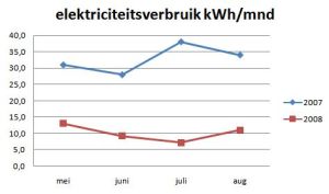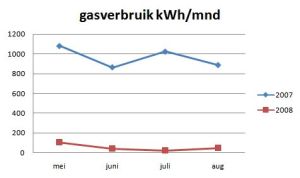 1 september, en daarmee zijn de eerste vier maanden van het LIM project afgerond. Ik heb even een vergelijking gemaakt tussen het verbruik van de periode mei-augustus vorig jaar en dezelfde periode dit jaar.