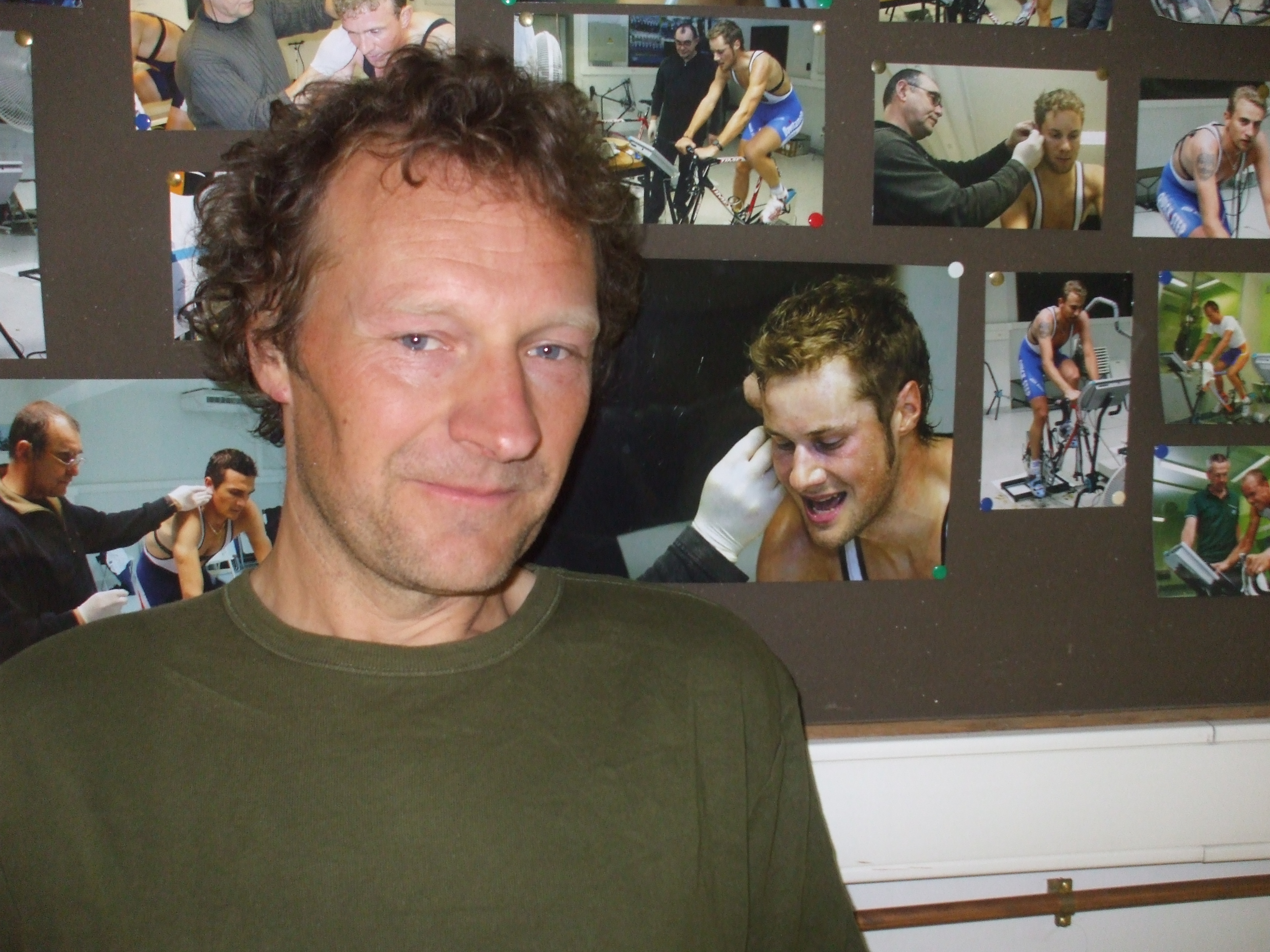 Tijdens de Canvas documentaire zal je kunnen zien hoe ik op de loopband bezig ben, met kabeltjes aan mijn lijf, een masker voor mijn mond terwijl ze bloed uit mijn oorlel aan het prikken zijn. Ter info, de uitzenddata zijn bekend: 11,18 en 25 december. (foto genomen half uurtje na de test… rara wie staat er nog op de foto?)