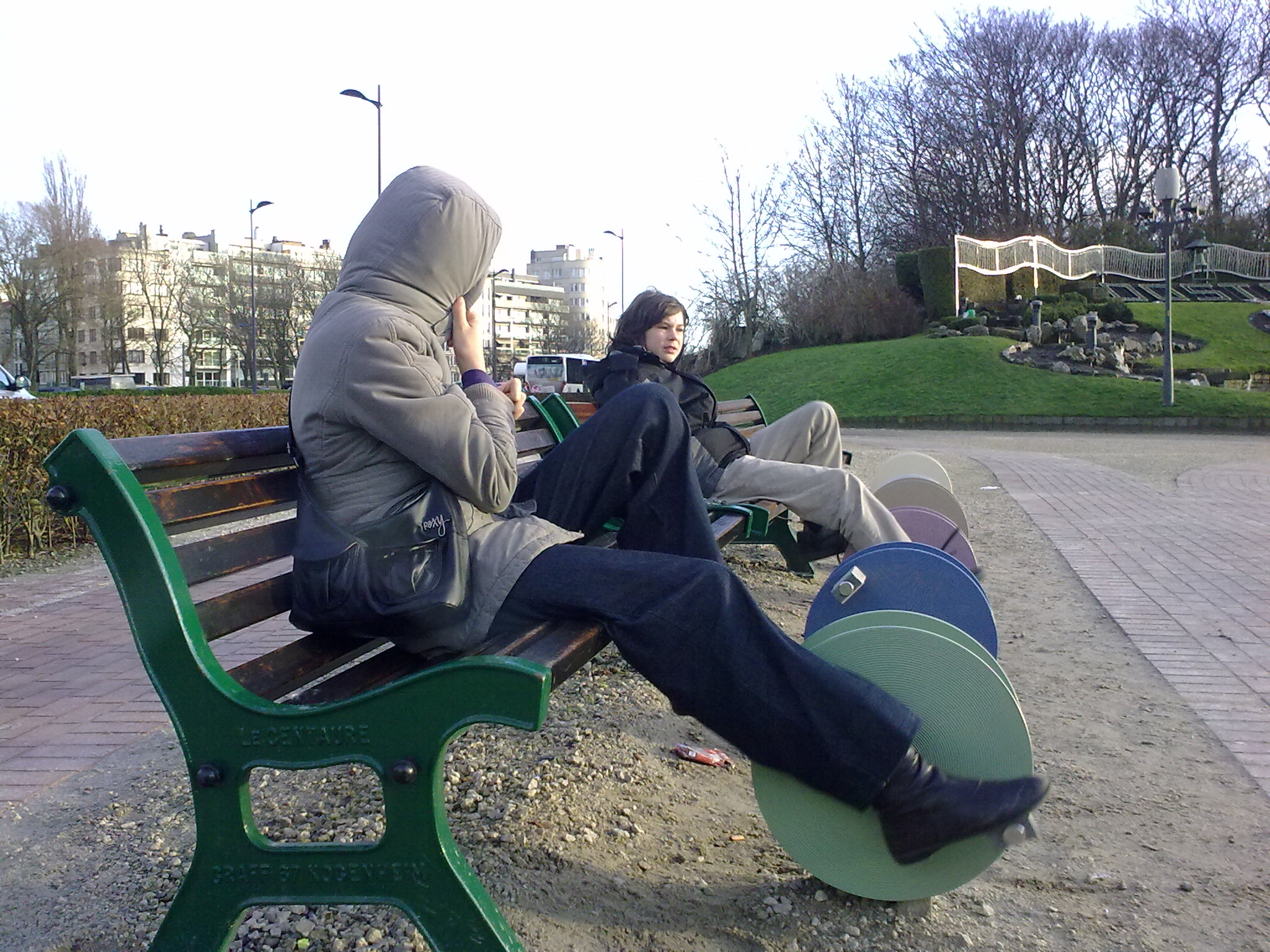 Ze hebben hier in het parkje een aantal trappers staan die als energiefiets zouden kunnen gebruikt worden (zie foto), maar jammer genoeg zijn die bedoeld om de ietwat oudere bevolking van de stad wat lichaamsbeweging te bezorgen en niet om groene energie op te wekken.