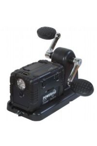 Dit toestel bevat een batterij en een stopcontact en kan je dus gebruiken om elektriciteit te produceren en op te slaan. Het voordeel is dat je geen fiets of hometrainer in je huis moet zetten en je in principe op elk moment kan trappen. Bij mij staat de generator gewoon voor de zetel, en ik merk dat de kinderen spontaan af en toe even trappen. Nadeel is wel dat het fietsen nogal wat geluid maakt en dit na een tijdje wat vervelend wordt. Je kan natuurlijk ook een koptelefoon opzetten. Als trainingstoestel om je beenspieren te oefenen gaat het trappen iets te makkelijk. Ik heb het toestel voor 130 euro gekocht bij Ecoproof. Het zal wel een tijdje vragen om dit terug te verdienen door eigen elektriciteit op te wekken, maar dat is niet de eerste bedoeling. Ik hoop vooral dat we hier binnenkort eens een serieuze stroompanne krijgen. Dan kan ik met mijn energie-fiets én generator als enige in de straat blijven naar de radio luisteren én berichtjes online zetten…