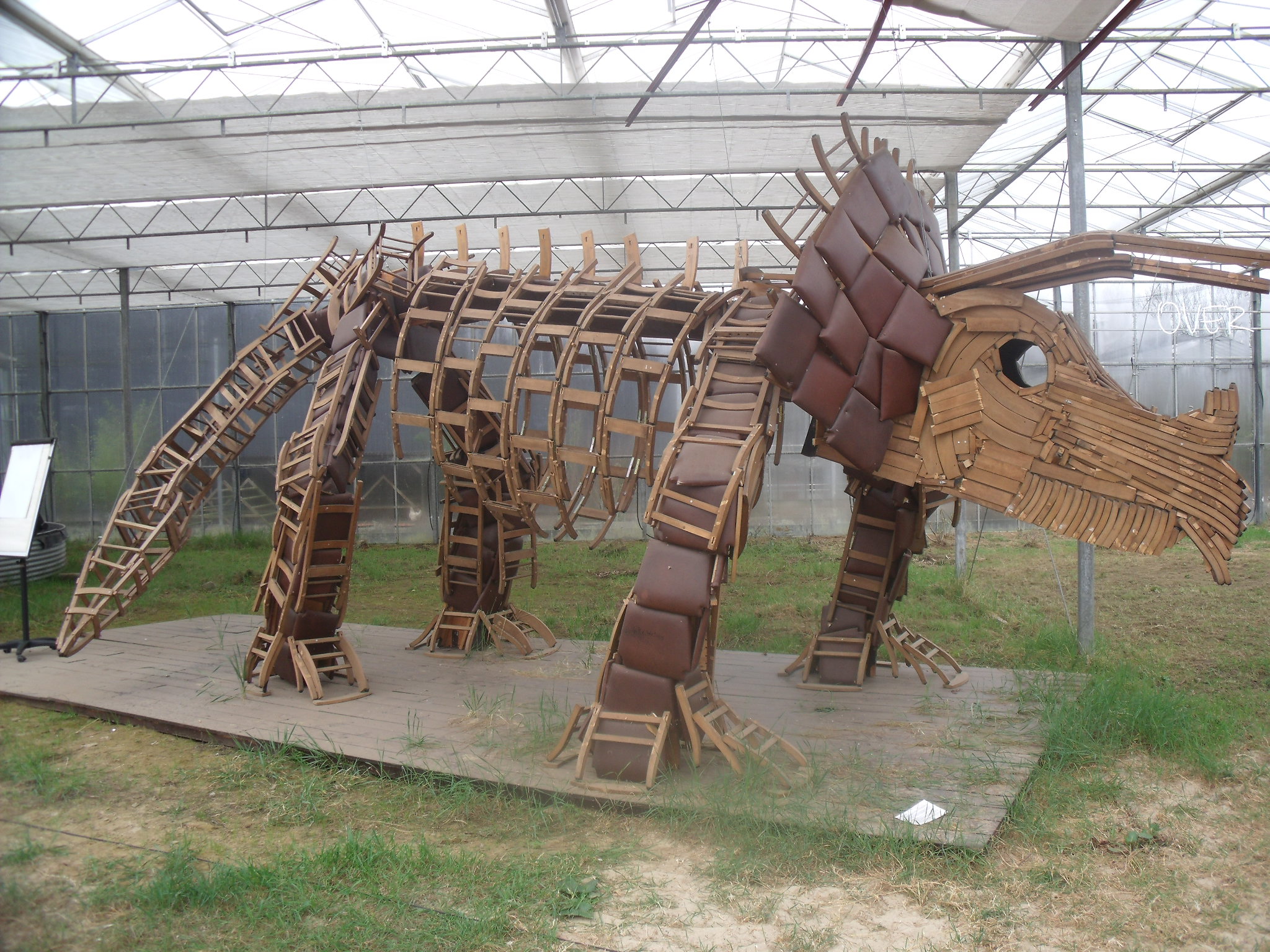 Dinsdag voormiddag was ik in Kemzeke, in het fantastische museum van Geert en Carla Verbeke. Op een oppervlakte van 12 hectare is er een overzicht van zeer bizarre en indrukwekkende installaties die je manier van denken behoorlijk op de proef stellen. Er is bijvoorbeeld een “camping flat” van Kevin Van Braak waar je ook echt kan kamperen. Er zijn collages en assemblages, zoals de levensgrote dinosaurussen gemaakt van kerkstoelen (een subtiele kritiek op het Creationisme) of bizarre bewegende reuzeninsecten. In de gigantische serres staan bizarre meubels en diepvrieskunst en ook het befaamde kippenproject van Koen Van Mechelen is er te zien. Echt een aanrader om eens een kijkje te gaan nemen. Misschien als het kan voor 30 april want dan kan je in meteen ook de Antartica Matters tentoonstelling van Dixie Dansecourt bekijken.