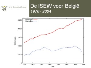 3. andere indicatoren gebruiken. ‘Vooruitgang’ mag niet langer gemeten worden met BNP als maatstaf. We kiezen voor indicatoren die rekening houden met ongelijkheid, gezondheid, milieuschade en dergelijke. Het ISEW is een goed voorbeeld van zo’n andere indicator. Die toont aan de ondanks de stijging van BNP het welzijn is gedaald. Verhogen van ISEW is belangrijker dan verhogen van BNP.