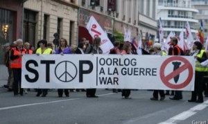 Gisteren was ik er ook bij, de vredesbetoging in Gent. Ze was niet moeilijk te vinden, want een helikopter circelde al een uur van te voren boven het centrum van Gent. Op weg ernaar toe zag ik verschillende overvalwagens, een waterkanon, en behoorlijk wat politieagenten die meer weg hadden van militairen in oorlogsgebied. Een hele boel diesel en benzine nutteloos verspild dus.