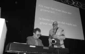 Hier alvast een beeldje uit het slot van de show (om een of andere reden zijn de foto’s hier zwart wit, maar we hebben wel een groene bril aan.