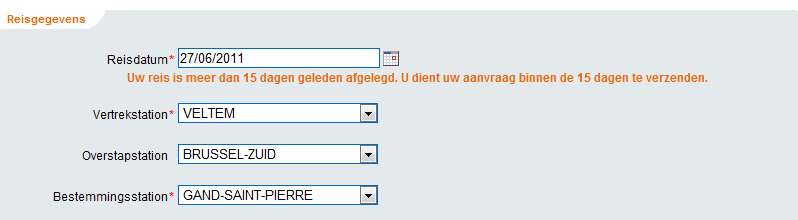 26 juni 2011 is meer dan 15 dagen geleden, zeggen ze op 27 juni. Ik begin stilaan te twijfelen of ik nog over al mijn geestesvermogens beschik. En ja, na een half uur zoeken en proberen heb ik GEEN compensatie-vergoeding kunnen aanvragen en voel ik me als reiziger behoorlijk belachelijk gemaakt.