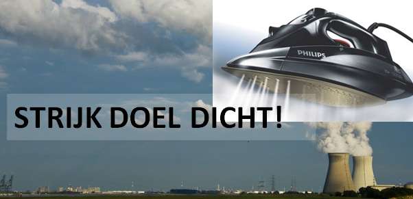In verschillende steden worden feestelijke  ‘strijkijzerinzamelingen’ georganiseerd. Voor vele huisvrouwen is het een echte bevrijding om dit saaie werk eindelijk vaarwel te kunnen zeggen.  De enkele mannen die al eens een strijkijzer gebruikten stemmen daar volmondig mee in. De verzamelde strijkijzers worden dan weer gebruikt door het Passiefhuisplatform. Mits enige aanpassingen kan je namelijk een strijkijzer gebruiken om een passiefhuis te verwarmen. Kortom, deze actie van onderuit is goed op weg om het debat over kernenergie in de goede richting te sturen. Om nog meer kerncentrales te sluiten komen de droogkast en de haardroger ook in het vizier.