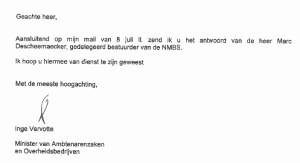 Trouwe bloglezers herinner zich wellicht ook nog de ellende bij het spoor eind juni, en de redelijk Kafkaïaanse manier waarop je online een vergoeding kon aanvragen. Ik heb me toen een beetje kwaad gemaakt en mocht mijn ongenoegen uiten via de krant en Peeters en Pichal. Ik heb toen een mail gestuurd naar de bevoegde minister, Inge Vervotte. En kijk, het telefoontje naar PenP had wel snel effect. Ik ben meteen telefonisch gecontacteerd, ik heb een paar mails gekregen, een sorry-pass per post en een mail van Inge Vervotte. In die mail beloofd ze dat de NMBS de mankementen aan het
