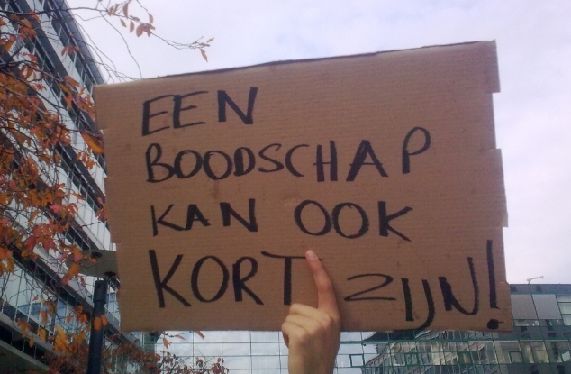 Ik ben dus gisteren even langs gegaan op de ‘Occupy Ghent’ manifestatie. Er waren een paar honderd mensen, vooral jonge mensen, enkele standjes en een redelijke hoeveelheid honden. Tijdens de speakerscorner kon iedereen zijn mening kwijt, en daar konden boze woorden aan het adres van de banken natuurlijk op veel bijval rekenen. Maar er waren ook oproepen voor een grote bewustzijnsverandering en voor meer liefde. De volkvergadering zelf heb ik niet gevolgd, maar als ik de reacties daarover op Facebook lees dan was dit blijkbaar niet zo’n succes.