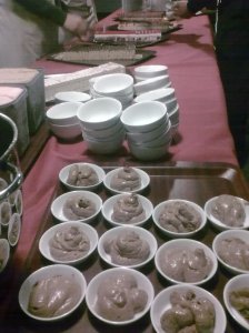 Het is me wel opgevallen hoe vaak je suiker krijgt aangeboden. Koffiekoeken bij het planten van bomen of bij de lezing bij het ACW, overal koekjes en suiker bij de koffie en thee, en gisterenavond nog een uitgebreid dessertbuffet na de show bij Boss paints. Chocomousse, ijsjes, allerhande lekkere taarten. Ik heb het even bekeken en dan zonder probleem geweigerd.