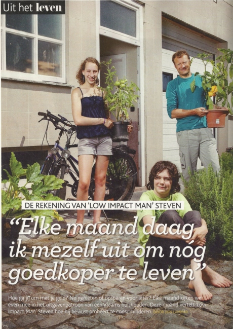 Toen ik het nummer in handen kreeg was ik wel een beetje ontgoocheld over de titel (die ik niet op voorhand heb gezien). Want wie me een beetje kent weet dat het mij niet te doen is om elke maand goedkoper te leven, maar om elke maand ecologischer te leven. Ik vermoed dat de redactie woorden als ecologisch niet zo makkelijk gebruikt, en dus sta ik daar nu met een quote die niet van mij komt. Maar goed, het kan nog erger, want het valt me op hoe media flink hun best doen om via spectaculaire (en soms misleidende) titels aandacht te trekken. In dit internet tijdperk gaat het erom om lezers te verleiden om te klikken. De waarheid een beetje geweld aan doen is daarbij niet zo’n probleem.