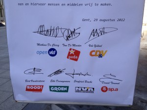 Dus zouden we er redelijkerwijs mogen van uit gaan dat al deze zaken verwezenlijkt zullen worden, ongeacht de coalitie die aan de macht komt. Trouwens, als we de reacties van de partijen zien op de ‘vragende partij‘ ziet het er ook naar uit dat binnenkort op de Gentse feesten zowel het bekerprobleem als het plas-discriminatie probleem worden aangepakt. Natuurlijk, enige reserve kan hier natuurlijk geen kwaad, want een belofte doen is niet zo moeilijk. En in deze media tijden hebben politici vaak de neiging tegemoet te komen aan de ‘wil van het volk’ eerder dan te doen waar ze voor staan. (zie maar naar de zaak Martin)