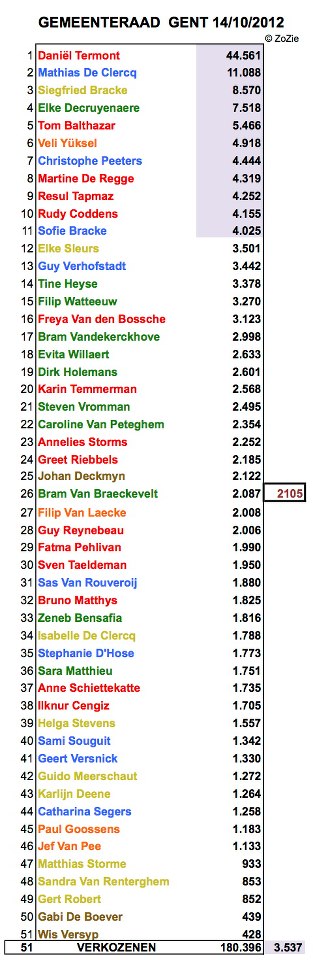 Gisteren stonden in de krant een aantal cijfers over de verkiezingsuitgaven van de Gentse partijen en kandidaten. Altijd interessant om nog eens te bekijken met het op de efficiëntie. De wettelijk bepaalde drempel in Gent was tot 104.552,04 euro per lijst en 6.641,29 euro per kandidaat, die drempel is dus afhankelijk van het aantal kiezers. In principe moeten alle verkiezingsuitgaven zoals drukwerk, kosten van activiteiten en plaklijm worden aangegeven.