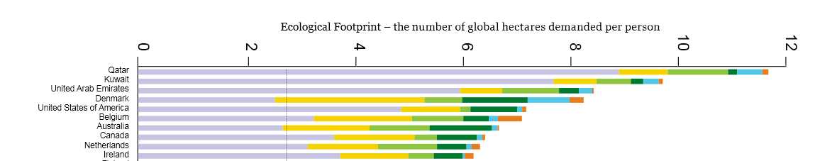 De cijfers passen naadloos bij onze grote ecologische voetafdruk, waar we wereldwijd nu de zesde plaats bezetten (na respectievelijk Qatar, Koeweit, de Verenigde Arabische Emiraten, Denemarken en de VS). Er is toch wat reden tot ongerustheid, want in de vorige rangschikking hadden we nog de vierde plaats.