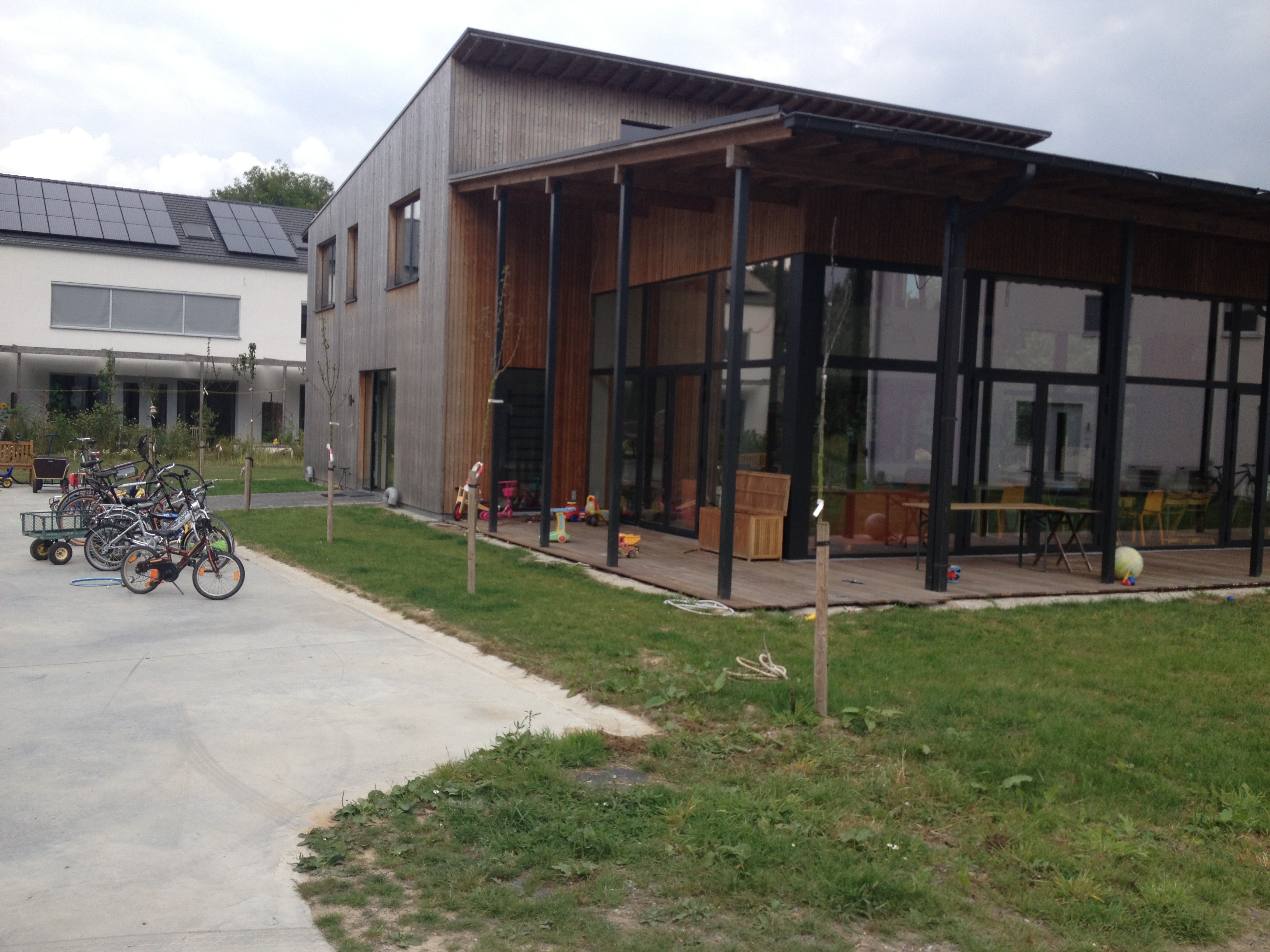 Tenslotte hebben we ook veel ons hoofd gebroken over de betaalbaarheid van zo’n project, en over juridische en ecologische kwesties van het bouwproces. We zijn op bezoek geweest bij het co-housing project in Vinderhoute (zie foto). Een ander project dan het onze, maar zeker interessant om te leren hoe ze daar de vele praktische kanten van het samenleven regelen.