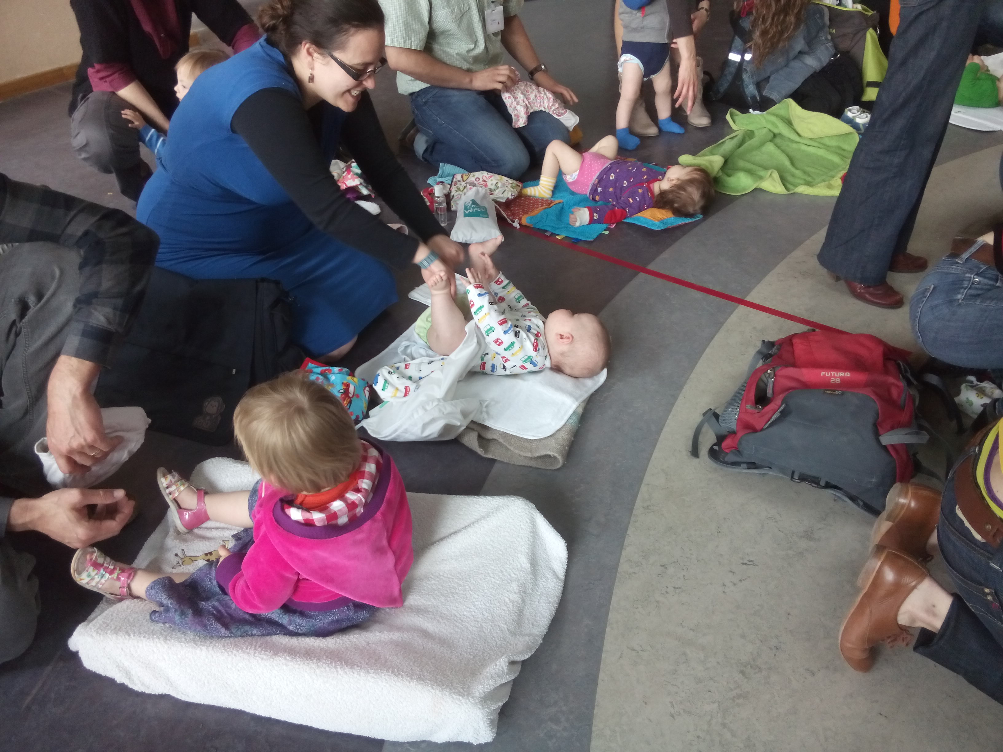 beurs organiseerde en waar heel wat mensen langs kwamen om allerlei stekjes en plantjes te delen met elkaar. Om 11 uur stipt aan de andere kant van Gent kwamen een hoop ouders bij elkaar om samen 56 baby’s te verluieren. Dit in kader van een mondiale recordpoging herbruikbare luiers verversen.
