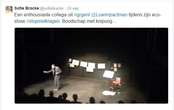 Iets te weinig tijd om stukjes te schrijven deze dagen, want de première voorstellingen nemen alle energie in beslag. Maar ik kan alvast enkele reacties meegeven. Dus hier een tweet van schepen Sofie Bracke.