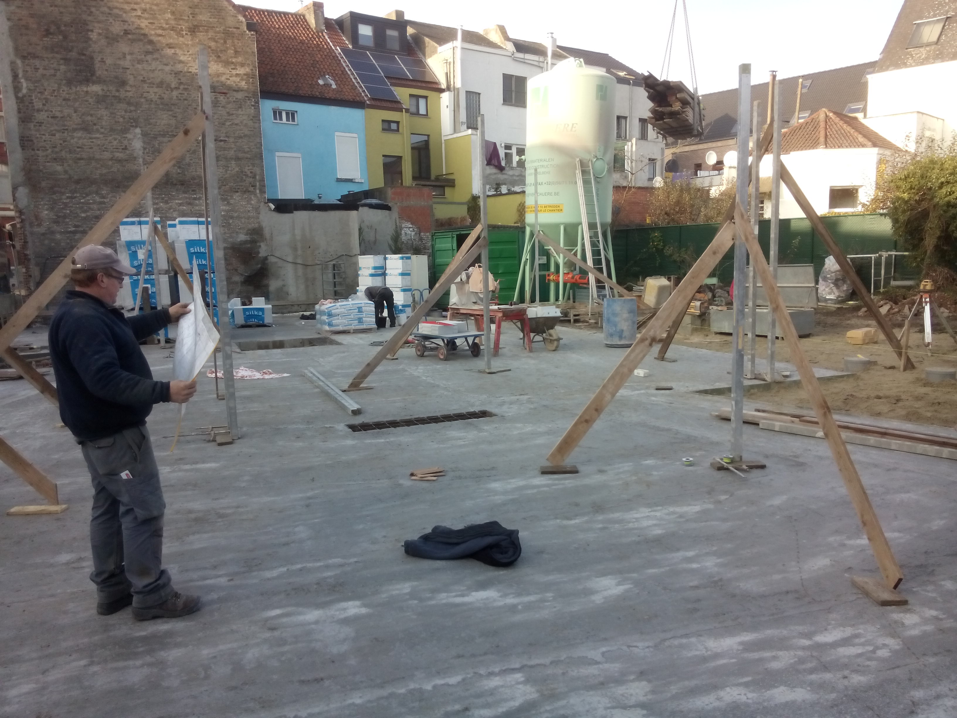 Nu de grondplaat er ligt is het ook al mogelijk aan te voelen hoeveel tuin er nog overblijft en hoe groot de units zullen zijn. Zowel om ecologische als financiële redenen hebben we gekozen voor zeer compacte – klinkt wat beter dan kleine – units. Zo zal ik het moeten doen met zo’n 60 vierkante meter (+ balkon van 7 m²), een pak minder dan de 80 m² waarover ik nu beschik. Dat wordt dus meteen een oefening in nog wat minder spullen overhouden en zeer slim omgaan met ruimte. Maar alles is relatief natuurlijk, in vergelijking met sommige ‘Tiny Houses’ die je wel eens ziet passeren op internet zal mijn unit nog de allures van een kasteel hebben. En aangezien we in vergelijking met onze buurlanden gemiddeld wel erg groot wonen moet iemand het voorbeeld geven. Het groot voordeel van de co-housing aanpak maakt dat we een aantal gemeenschappelijke ruimtes delen en dus wél makkelijk feestjes voor veel volk kunnen geven.