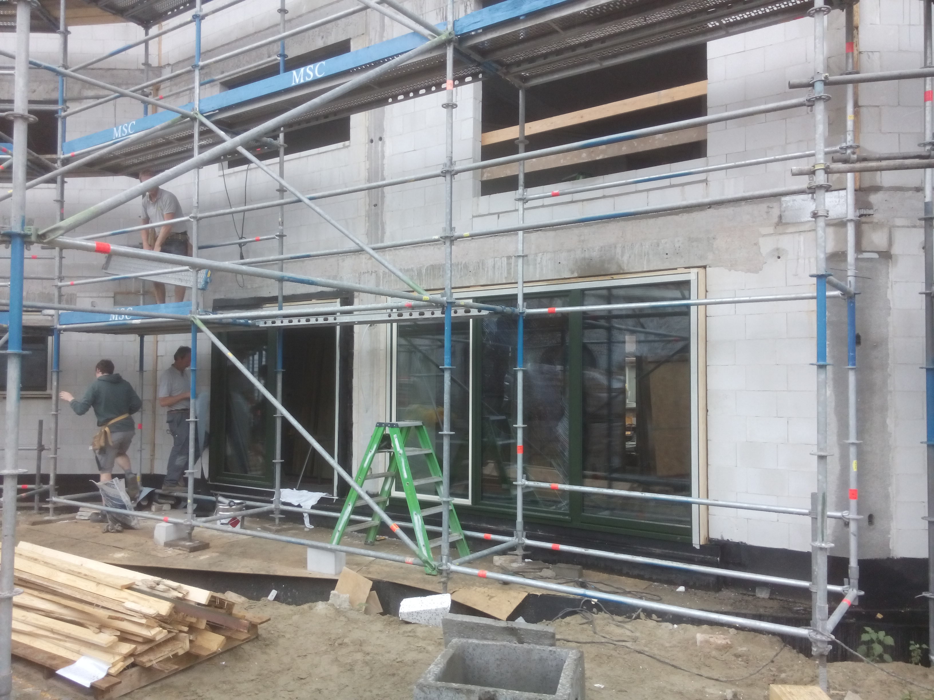 En zodra er ramen staan kan ook gestart worden met het isoleren van de muren en het plaatsen van de voorgevel. Maar dat zal voor na het bouwverlof zijn.