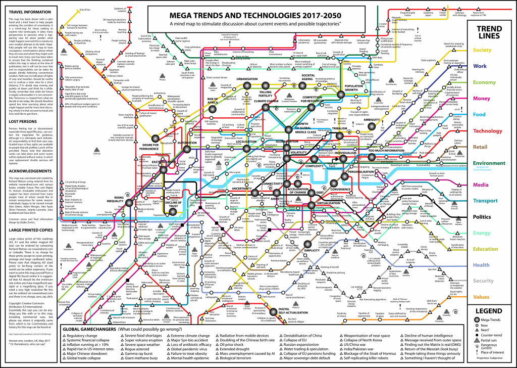 Als we naar de toekomst kijken is het aantal variabelen zo goed als oneindig. Onderstaand schema maakt dit misschien duidelijk. Het selecteren van de meest relevante is een onderdeel van het scenario plannen.