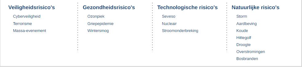 Het opzet van deze reeks is onderzoeken hoe we ons kunnen voorbereiden op mogelijke crisissituaties. Volgens de federale zijn dit de grootste risico’s.
