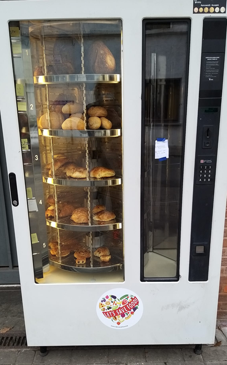 In moeilijke tijden is creativiteit erg belangrijk. Daarom ben ik zo blij met het nieuwe initiatief van Let’s Save Food in Gent. Vanaf nu kan je aan de Voo?uit in de Sint-Pietersnieuwstraat in Gent voedsel redden uit een reddingsautomaat. Let’s Save Food!vzw vult de automaat meermaals per dag met brood en broodproducten, soms ook koekjes, gevriesdroogd fruit, of andere lekkernijen. Alles in de automaat is gered van de afvalberg.