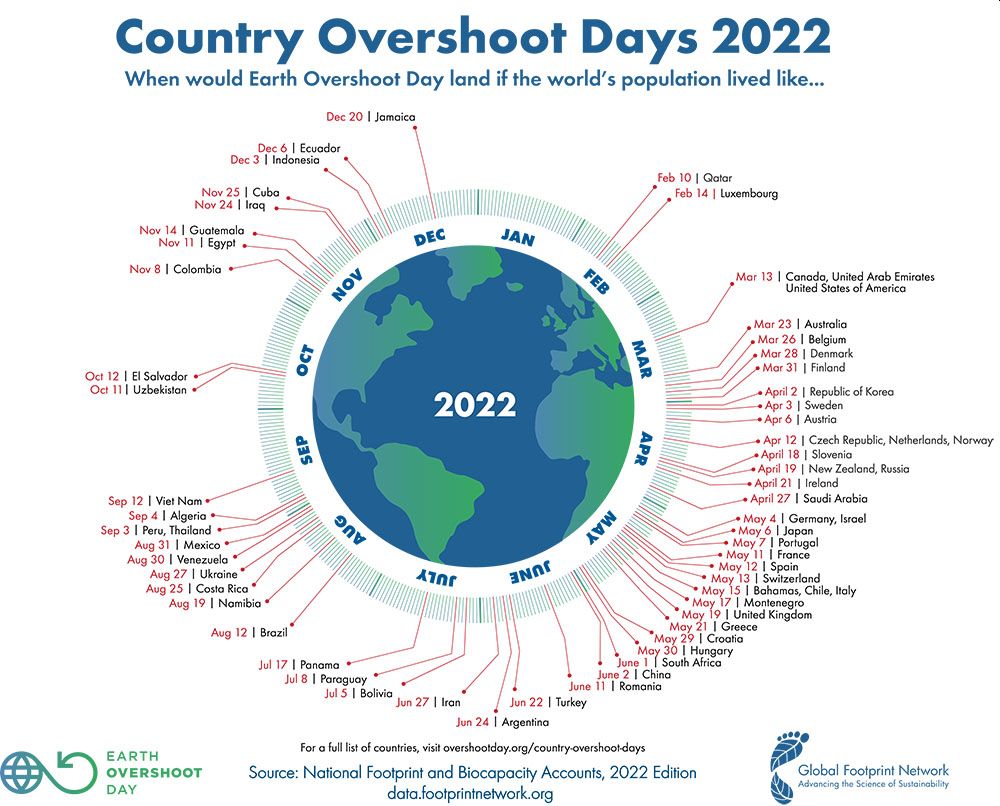 1. Kleine correctie: België staat op plaats 7 (na Qatar, Luxembourg, Canada, UAE, USA & Australia) op die Country Overshoot Days 2022. Het zijn dus slechts zes landen die het nog slechter doen dan wij.