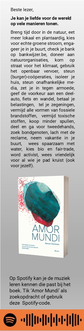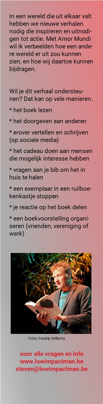 De tweede druk van Amor Mundi is aangekomen. Deze keer wil ik er ook een bladwijzer instoppen. Bij dat soort dingen is het altijd leuk wat advies te krijgen van mijn volgers. Wat denken jullie hiervan? Alle reacties welkom hieronder of via steven@lowimpactman.be