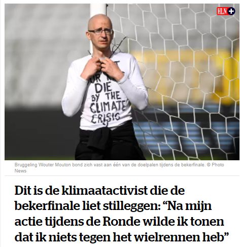 Het hoogtepunt van de bekerfinale was toch minuut 86 toen Wouter Mouton zich even kon vastmaken aan de doelpaal. Met zijn actie, die nergens agressief was en ook niemand in gevaar bracht, vraagt hij terecht aandacht voor een veel belangrijker kwestie dan wie een beker mee naar huis mag nemen. Wellicht zien we Wouter nog bij veel sportactiviteiten, want nu moet hij ook aantonen dat hij niks tegen voetbal heeft.