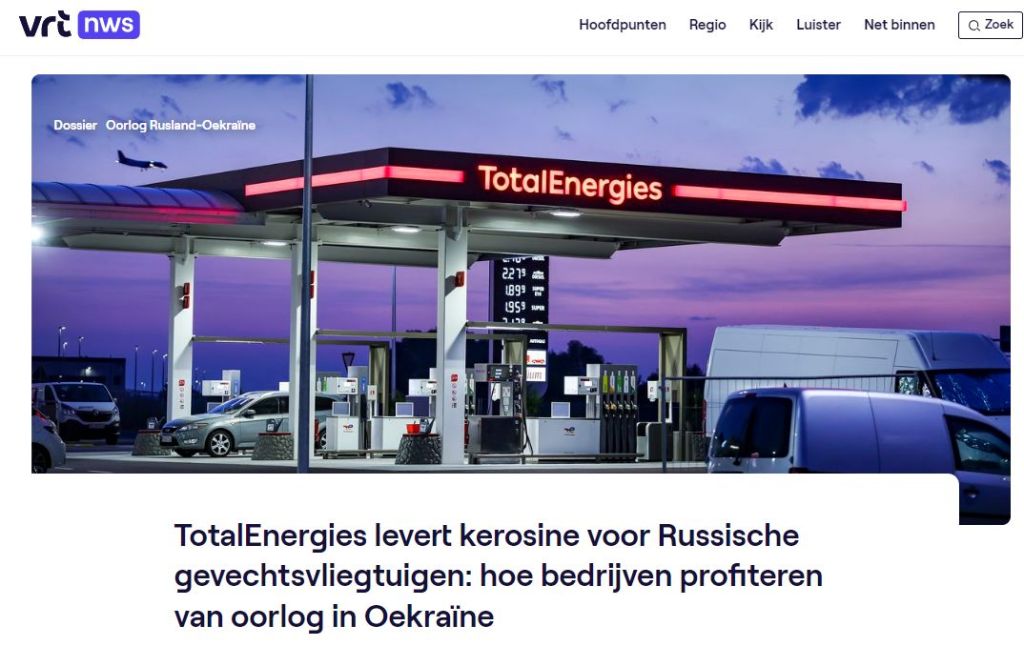Toch heeft dezelfde omroep er geen probleem mee zich te laten sponsoren door dit bedrijf, dat megawinsten maakt op kap van de gezinnen en bedrijven. Meer nog, ik lees op vrtnws eveneens dat TotalEnergies profiteert van de oorlog in Rusland door kerosine te verkopen voor de Russische bommenwerpers. Samengevat: TotalEnergies is een bedrijf dat woekerwinsten maakt, het klimaat om zeep helpt, bombardementen mogelijk maakt en leugens vertelt. Dan zou je toch denken dat er iemand bij de openbare omroep even nadenkt alvorens een sponsordeal af te sluiten? Nee hoor, elke dag krijgen de kijkers het logo in beeld tijdens een ludiek kwisje.