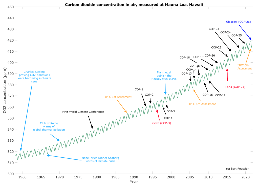 Opvallend in de grafiek: zoveel te meer Kilimaattoppen, zoveel te hoger het CO2 niveau & de opwarming. Mss beter stoppen (met al die privévliegtuigen)? 😉 😉