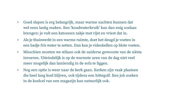 Mijn laatste boek heb ik geschreven in de hoop dat de tips zelden van pas zouden komen. Maar kijk, daar komt de eerste hittegolf aan. Dus deel ik hieronder het passende hoofdstuk (in de hoop dat ik het hoofdstuk over nucleaire ongelukken nooit moet plaatsen).