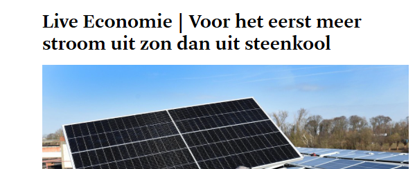 Dit bericht is toch ook hoopgevend: In 2024 kwam er  in de EU voor het eerst meer elektriciteit van zonne-energie dan van steenkool. Het aandeel van zonne-energie in de Europese energiemix steeg tot 11 procent van het totaal. Samen met windenergie (stabiel op 17 procent) en andere hernieuwbare energiebronnen was bijna de helft van de Europese elektriciteitsopwekking (47 procent) groen. Ik hou me in om erbij de vermelden dat wereldwijd het gebruik van fossiele energiebronnen blijft toenemen. Maar kom, 10 jaar na het verdrag van Parijs is steelkoolgebruik in Europa in dalende lijn.
