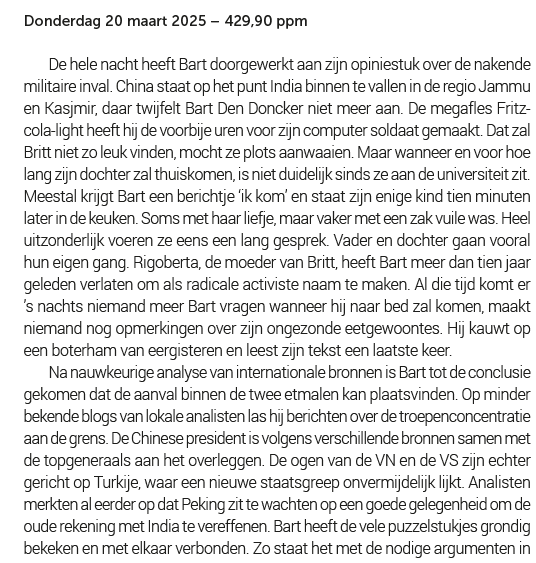 Het is een bijna letterlijk wat in het boek staat (Al dacht ik eerder een conflict om dezelfde regio tussen Pakistan en China). Een fragment (p.9)