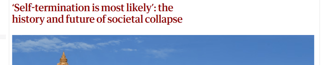 In een volgend hoofdstuk onderzoekt Luke Kemp hoe het zit met de veroudering van samenlevingen. Naarmate ze groeien neemt de ongelijkheid toe en installeren ze ‘rijkdompompen’, mechanismen die ervoor zorgen dat geld verplaatst wordt van de armen naar de rijken. Iets wat ook Pickety in onze hedendaagse economie heeft aangetoond. Hoe groter de ongelijkheid en hoe zwakker het democratische gehalte, hoe groter de kans dat zo’n samenleving in elkaar kan storten. Een studie van rampen in 150 landen over de periode 1995-2009 toont hetzelfde. De meest democratische landen, met de best uitgebouwde overheid zijn een pak veerkrachtiger.