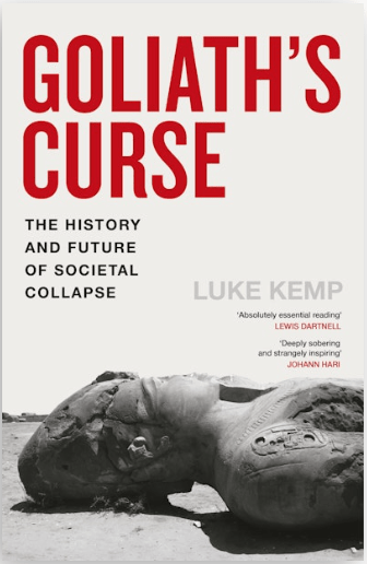 Deze zomer kon ik veel lezen, en één boek verdient hier wat bijzondere aandacht. De titel; ‘Goliath’s Curse. The history and future of Societal Collapse.‘ van Luke Kemp. Een stevige turf van 550 bladzijden met veel interessante en waardevolle inzichten. Dus neem ik wat tijd voor een bespreking. Wie liever een (Engels) interview met de auteur leest kan hier terecht. Al staat er in het boek veel meer dan de titel hieronder laat vermoeden.
