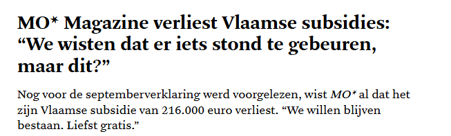 Vanaf 2026 valt 216.000 euro jaarlijkse Vlaamse steun voor MO* integraal weg. Mede dankzij die steun bereikt MO* jaarlijks 1,3 miljoen lezers, zonder betaalmuur.
