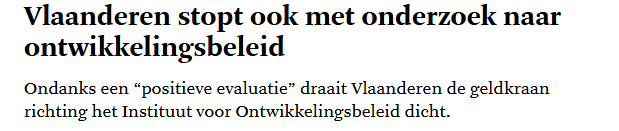 Allemaal om Vlaanderen voor te bereiden op de toekomst! Wat blijkt ook uit de tekst; de rest van de wereld kan ons helemaal gestolen worden. Alle onderzoek naar en journalistiek over het Globale Zuiden is met een pennestreek geschrapt.
