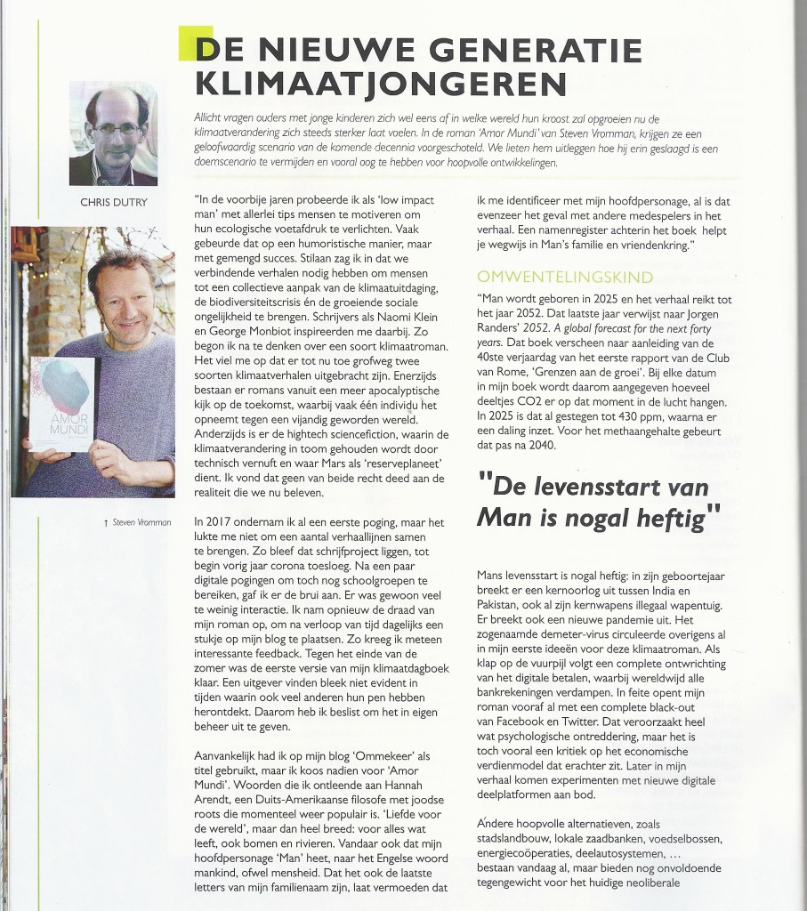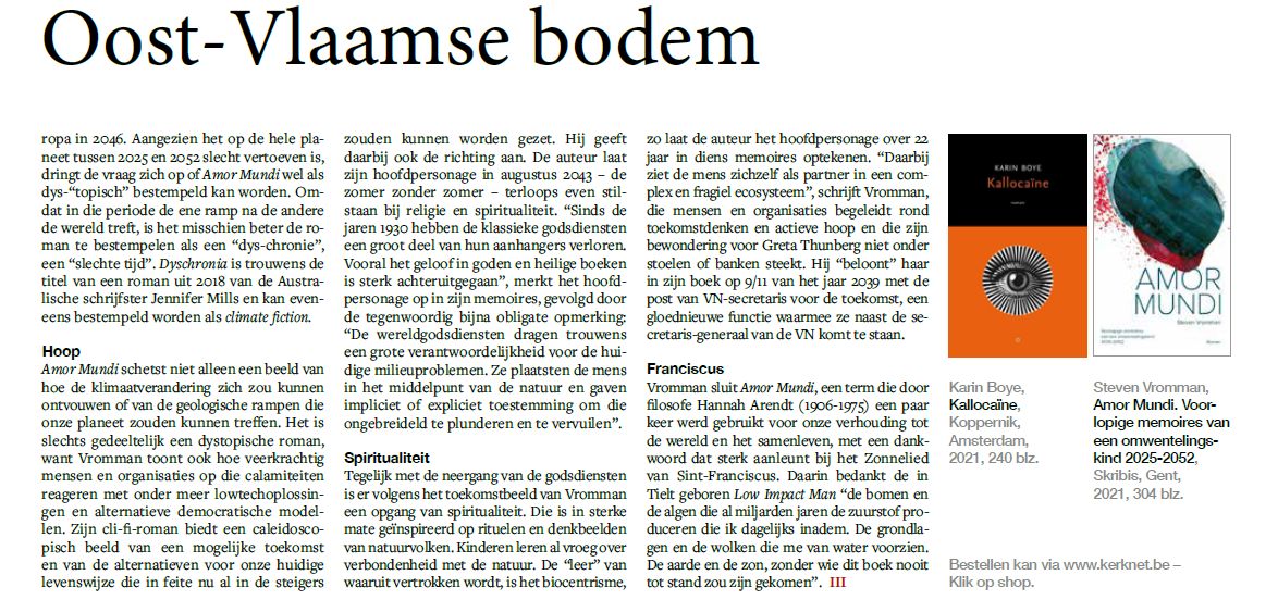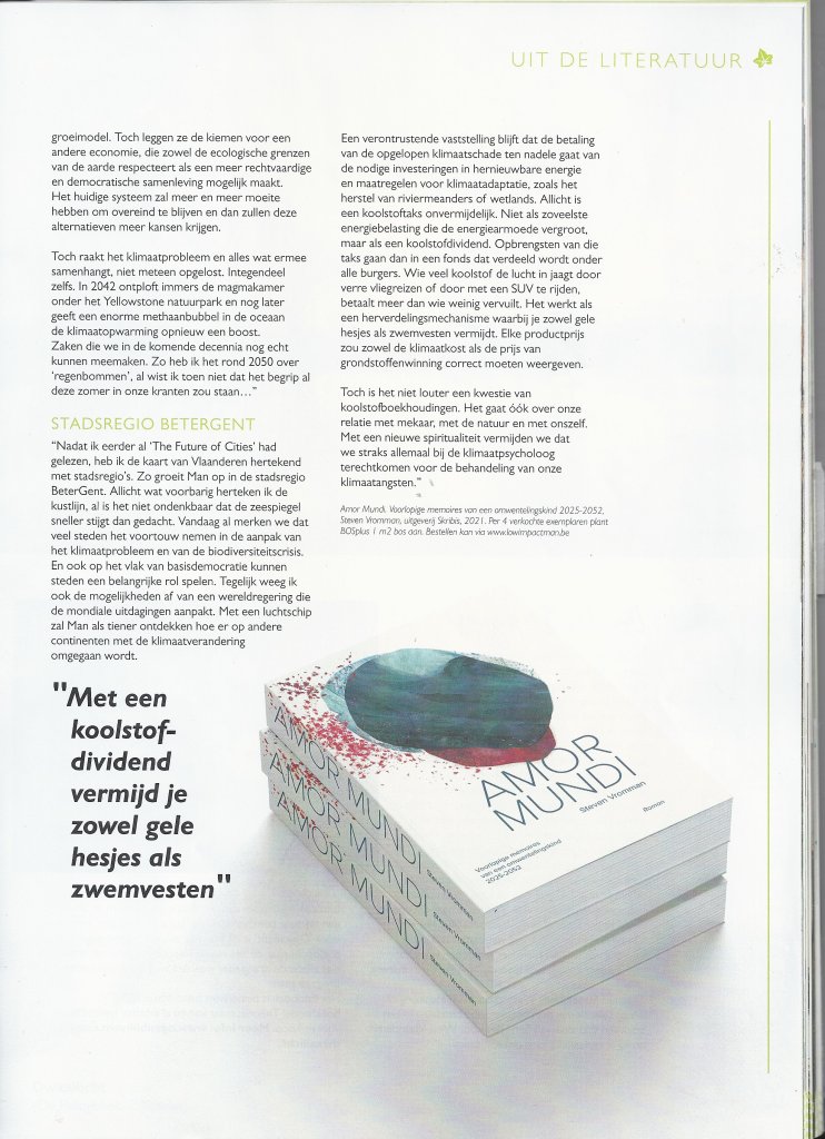 Jan -Pieter Everaert (van de Groene Belg) schreef een uitgebreide recensie over een hele reeks klimaatboeken, o.a. over Amor Mundi. Dit kan je hier lezen.
